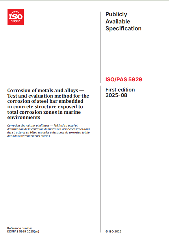 近日,由中國中冶所屬中國二十冶牽頭制定的一項(xiàng)國際標(biāo)準(zhǔn)《金屬和合金腐蝕 海洋環(huán)境全腐蝕區(qū)混凝土結(jié)構(gòu)中鋼筋銹蝕試驗(yàn)及評定方法》(ISO/PAS 5929-2025)獲批正式發(fā)布。