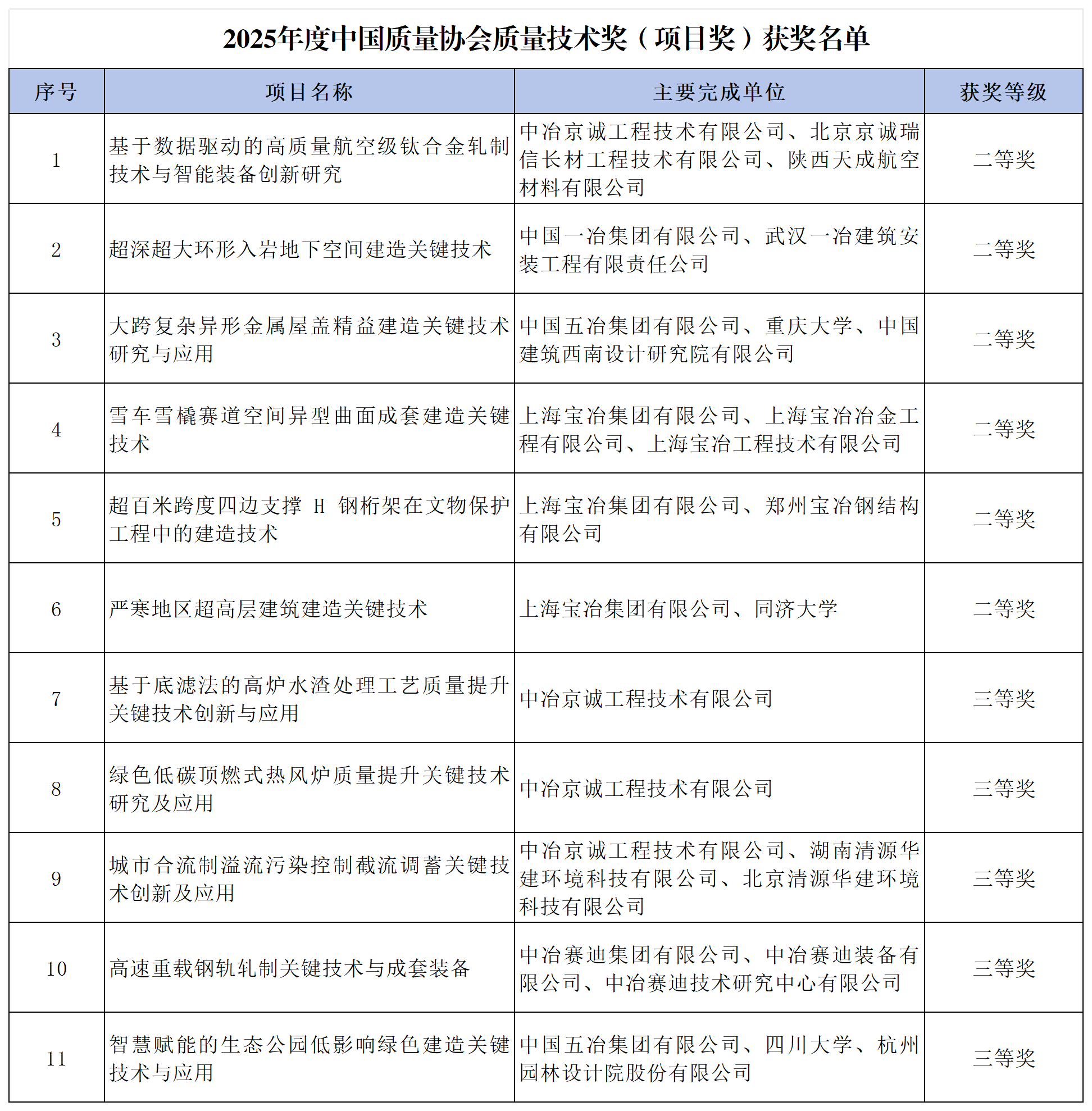 近日,中國質(zhì)量協(xié)會(huì)正式公布《2025年度中國質(zhì)量協(xié)會(huì)質(zhì)量技術(shù)獎(jiǎng)獲獎(jiǎng)名單》,中國中冶共計(jì)有5家子企業(yè)的11項(xiàng)質(zhì)量技術(shù)創(chuàng)新與實(shí)踐成果獲獎(jiǎng),其中二等獎(jiǎng)6項(xiàng)、三等獎(jiǎng)5項(xiàng),獲獎(jiǎng)總數(shù)同比增加1項(xiàng),二等獎(jiǎng)數(shù)量同比增加5項(xiàng),獲獎(jiǎng)數(shù)量和質(zhì)量實(shí)現(xiàn)雙提升,以實(shí)際行動(dòng)助推公司質(zhì)量技術(shù)發(fā)展。