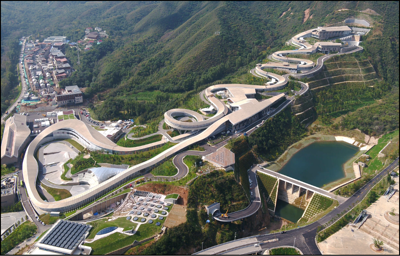 國家雪車雪橇中心賽道為狹長空間扭曲板殼結(jié)構(gòu),全長1975m,落差121m,在彎道數(shù)量、賽道長度和建造難度等方面均超越國外同類賽道,獲中國建設(shè)工程魯班獎(jiǎng)、詹天佑獎(jiǎng)。該技術(shù)依托國家科技部重點(diǎn)研發(fā)計(jì)劃,自主研發(fā)了結(jié)構(gòu)噴射混凝土材料制備及施工技術(shù)、開放式氨制冷系統(tǒng)安裝及運(yùn)行、競(jìng)速型賽道制冰修冰、氣候保護(hù)遮陽系統(tǒng)建造、基于數(shù)字孿生的智能建造等成果,達(dá)到國際領(lǐng)先水平,是我國首條毫米級(jí)雪車雪橇賽道,成功打破國外技術(shù)壟斷。